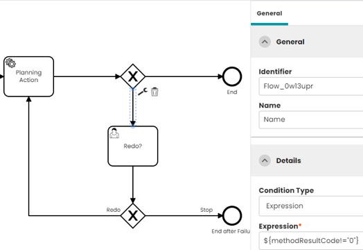 There are two possible ways of handling errors inside the process. It can be done either by variable value or by runtime exception. a) Variable value By using this error handling, it is possible to set the expression inside the modeler. [