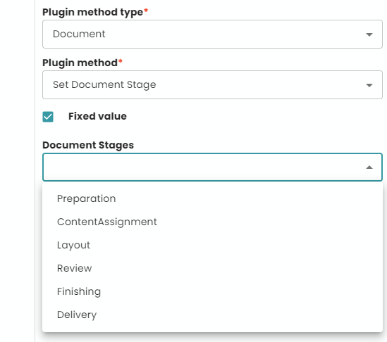 - Fixed Value - if set true, then Document Stages is provided, otherwise pass the value from process variable