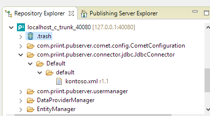 Each connector entity identifier points to a XML configuration element related to the connector instance. The XML configuration is stored within the publishing server and is accessed by the API.