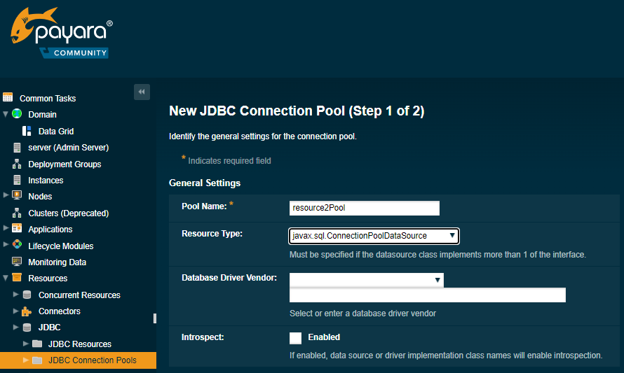 - Last but not least he creates a new JDBC Resource for the pool from step 2 - e.g. call “resource2”: