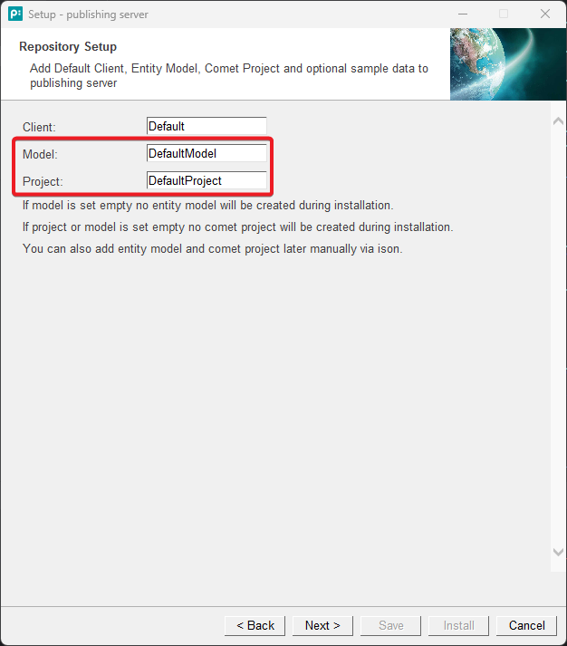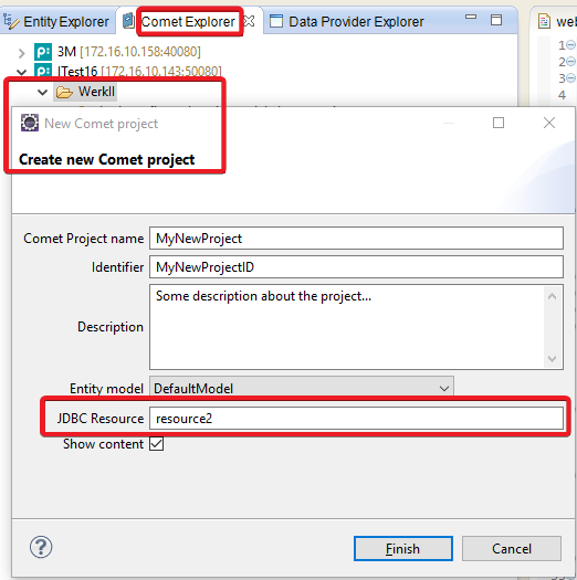The setting here defines the Model in the Entity Explorer and the Project in the CometExplorer in Ison: