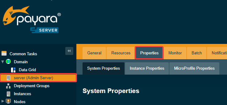 - Go to "Payara admin console" -> "server (Admin Server)" -> "Properties".