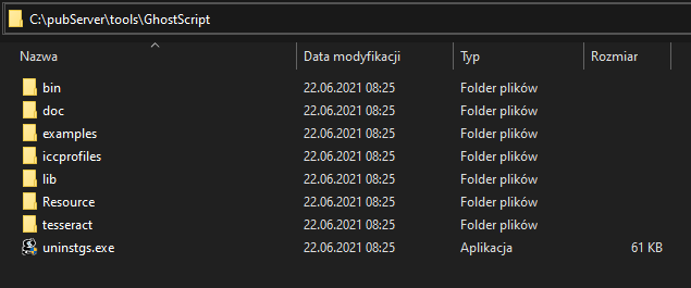 - Install GhostScript in "C:\pubServer\tools\GhostScript".