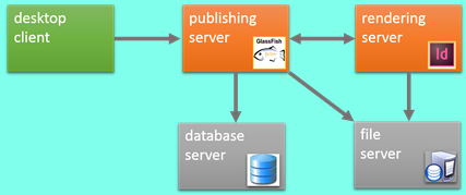 Rendering server will run on top of Adobe InDesign server. InDesign server will be supplemented by comet server plug-ins.