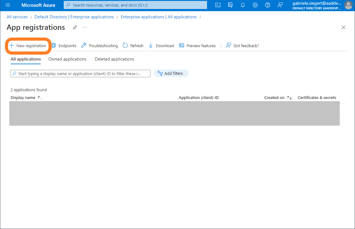 Log in to the Azure portal, go to Azure Active Directory, Enterprise applications and there to Application registrations: