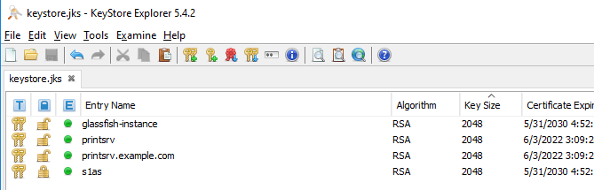 Now, copy the new certificate – e.g. “printsrv.example.com“ - and paste it into the keystore.jks - via context menu copy and paste.