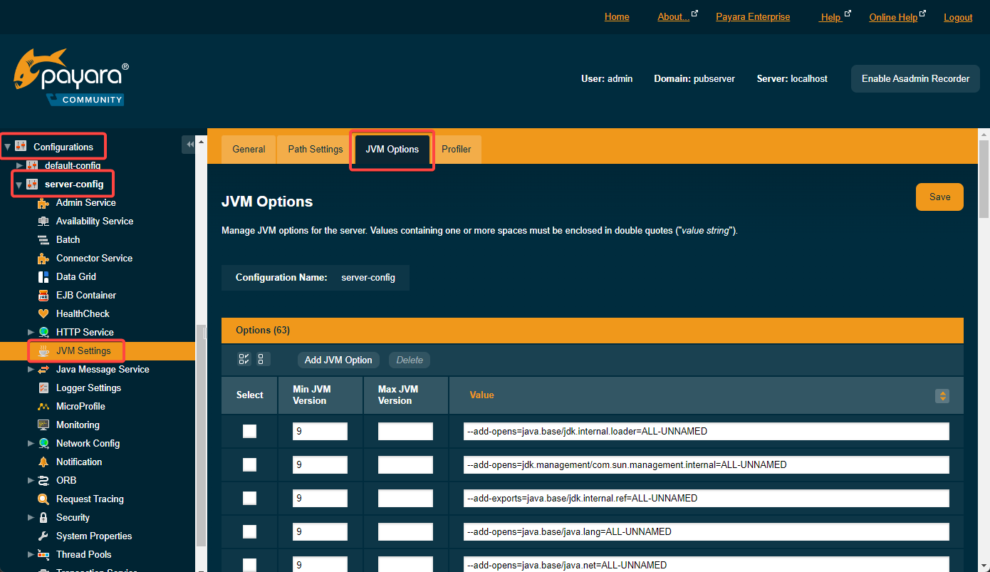 Use this to customize Java Virtual Machine options running on Payara.