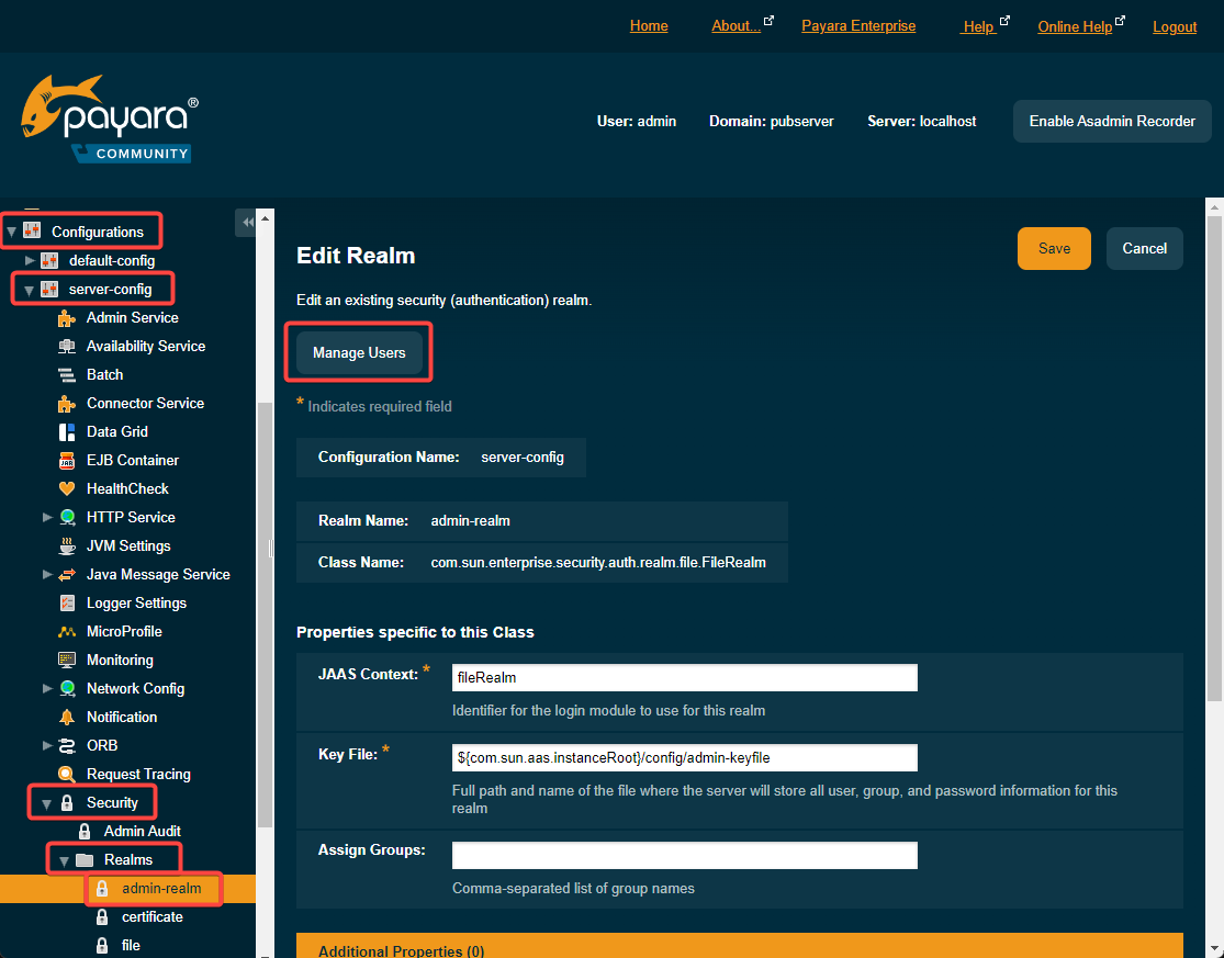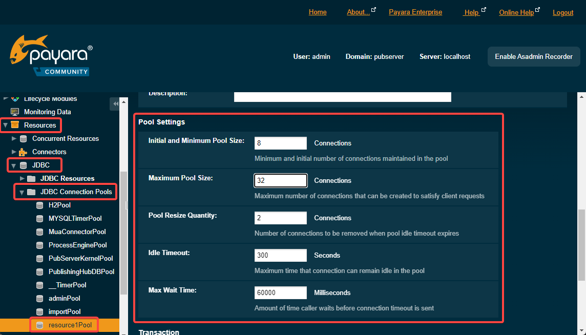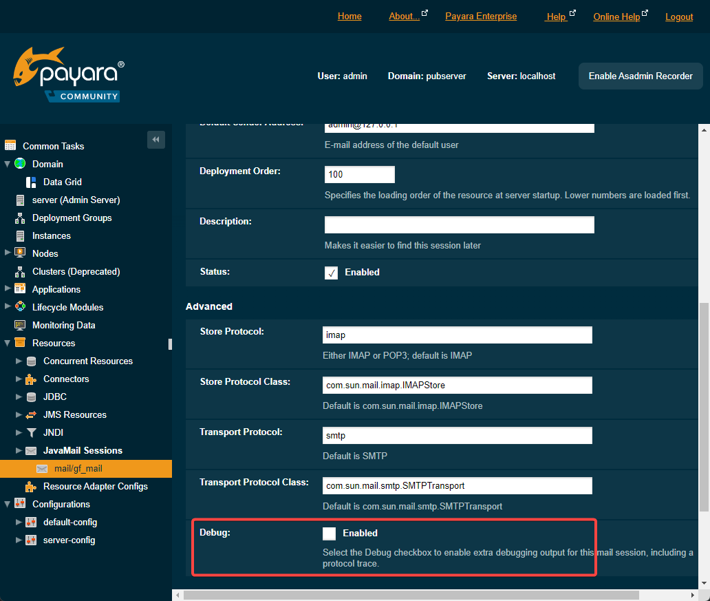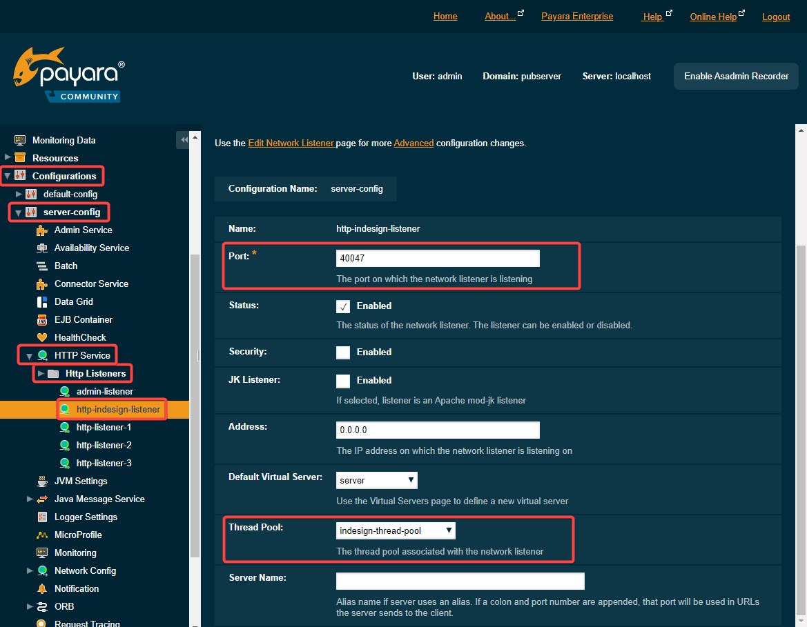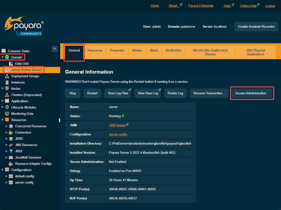 In Payara web console:
