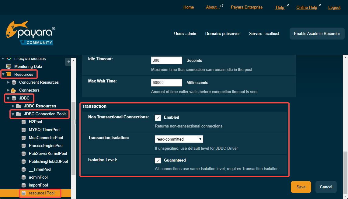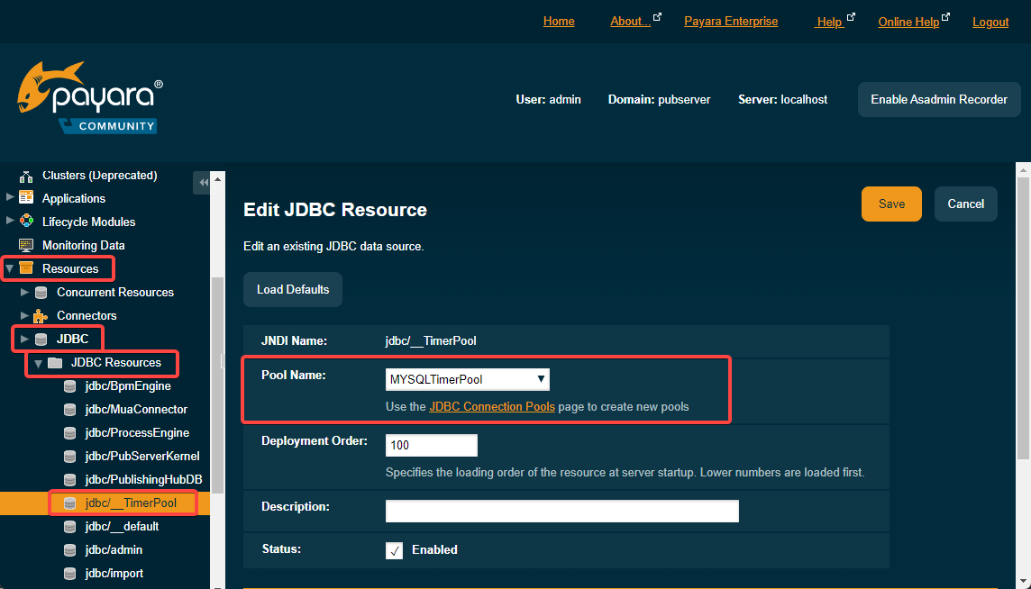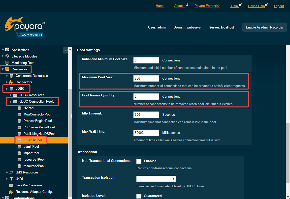 - Switch “jdbc/__TimerPool” JDBC Resource to the new pool