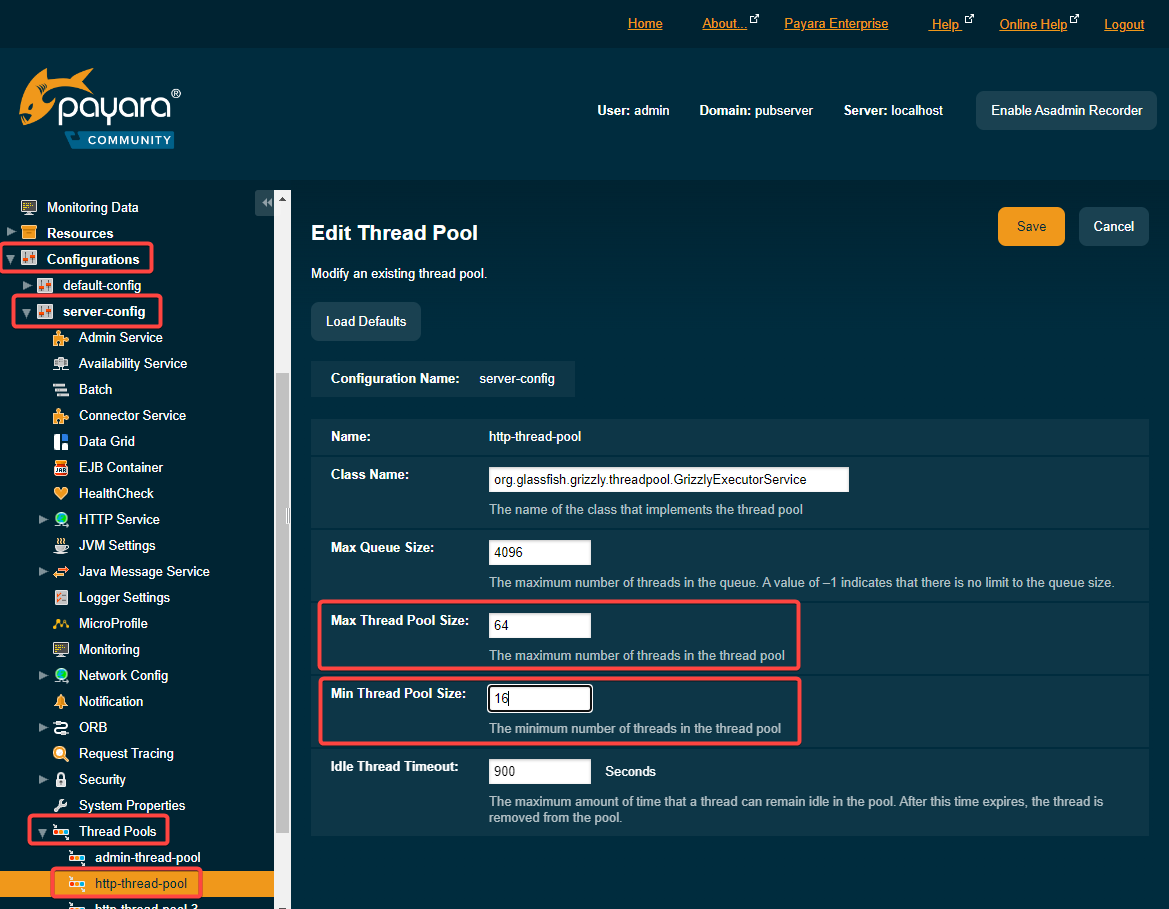 server-config -> Thread-Pools -> http-thread-pool