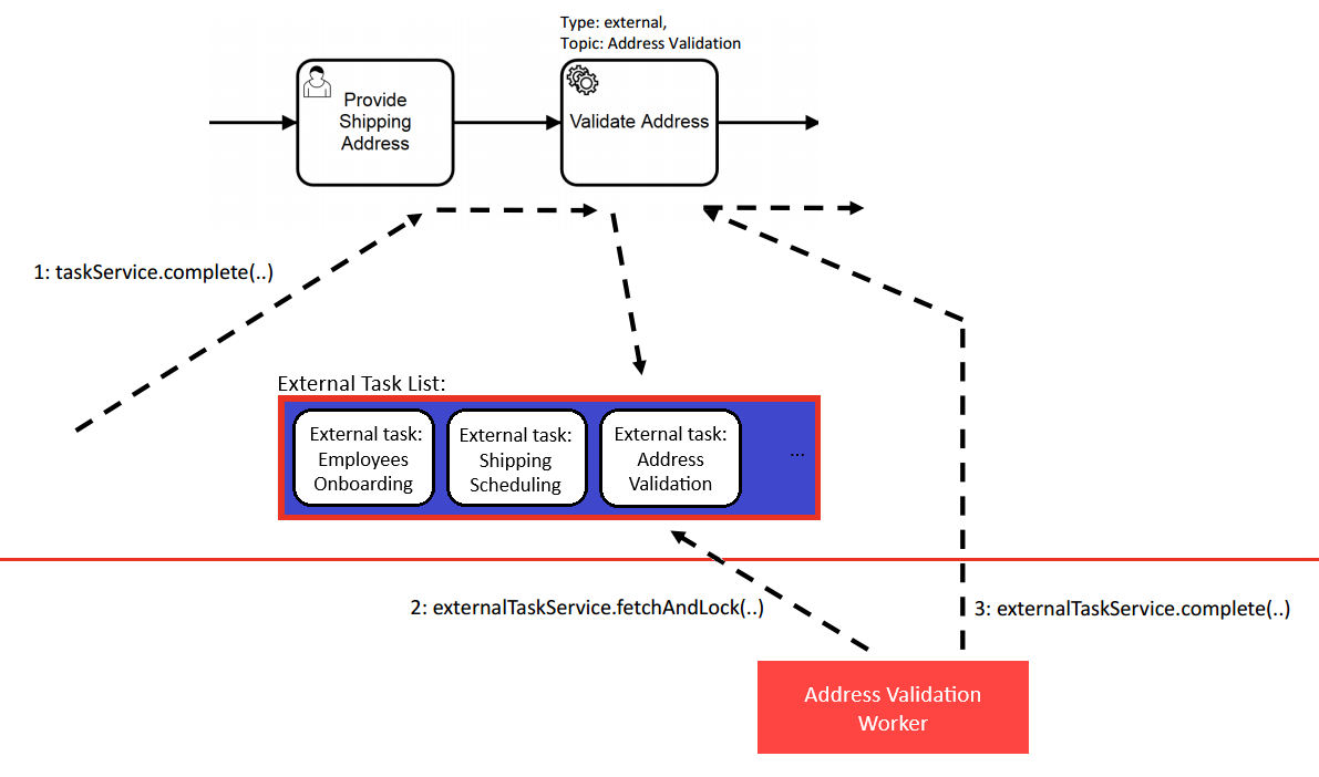 - External Worker & Process Engine: Complete external task instance