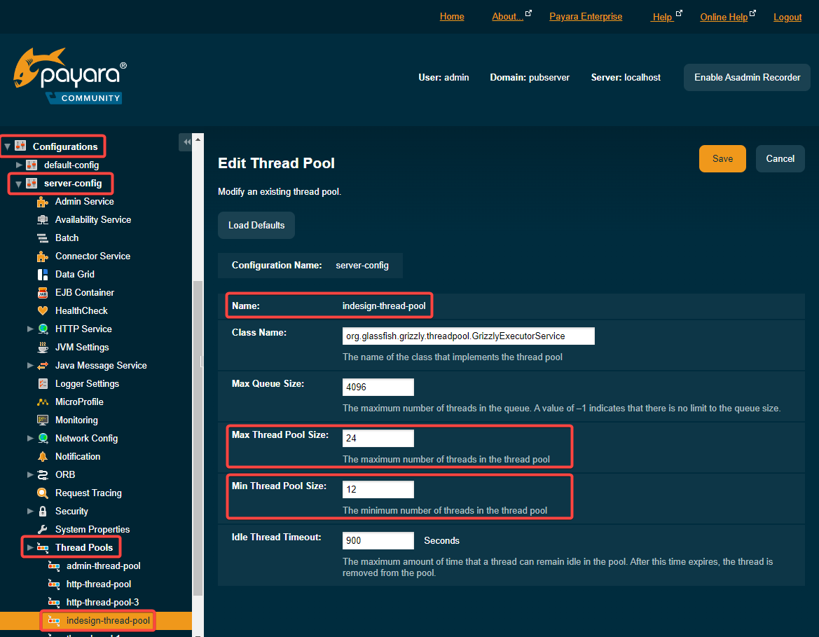 Add a new Thread Pool called “indesign-thread-pool”.