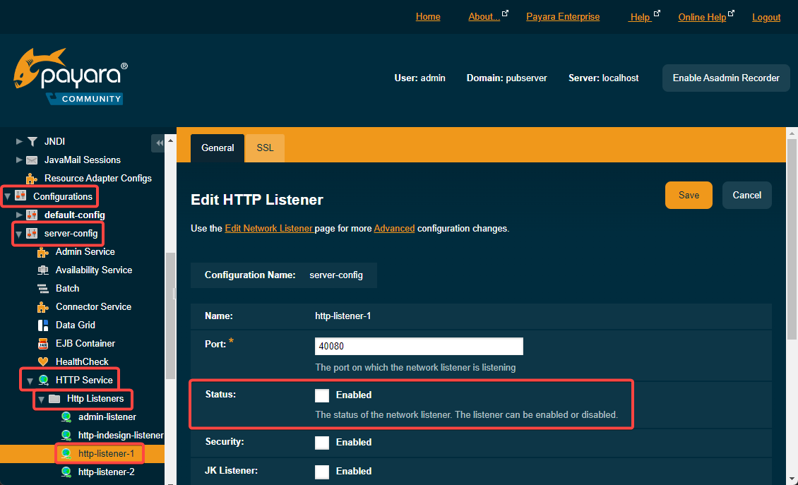 On Payara Web console navigate to: