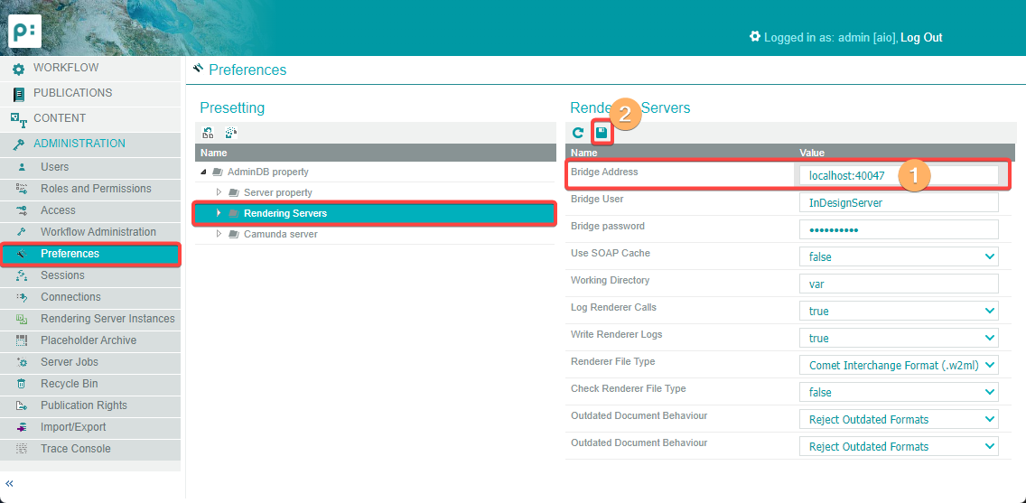 Then go to Administration -> Preferences -> AdminDB -> InDesign Servers