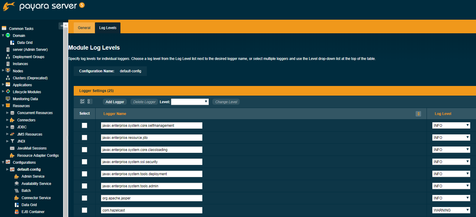 You can also set the log level for Payara components in the console
