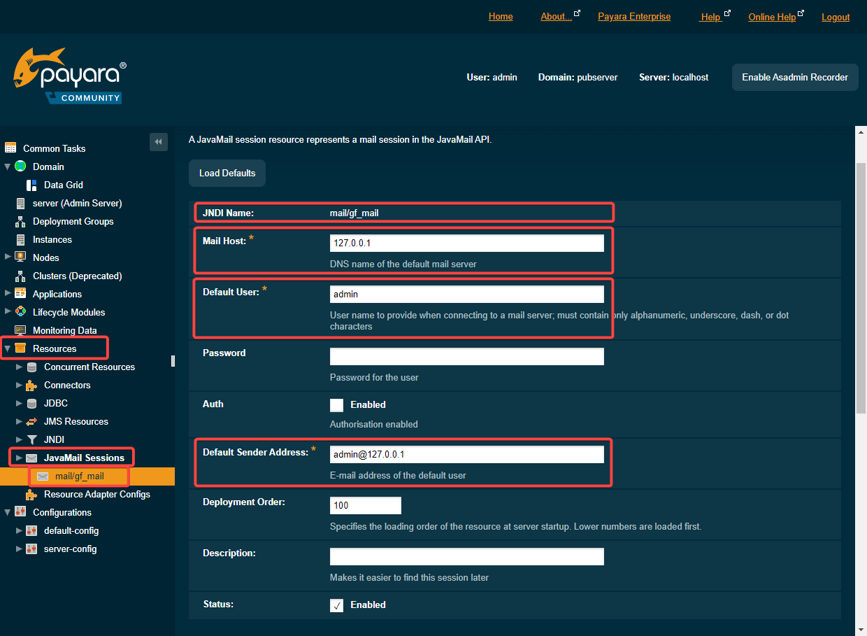 If not already existing, create a mail session with JNDI name “mail/gf_mail”.