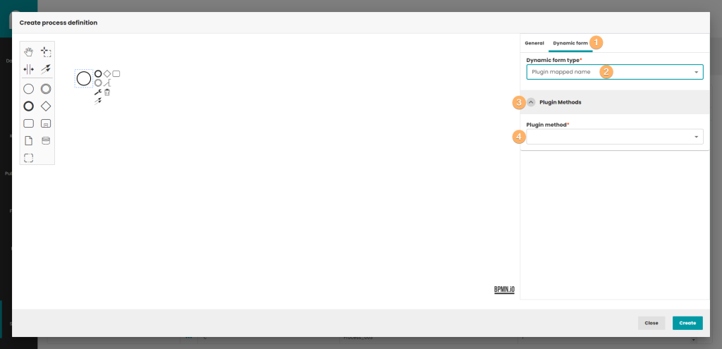 - Dynamic form component with the "Plugin mapped name" option selected. Those option displays a component, where you can indicate your preferred GUI generating method.
