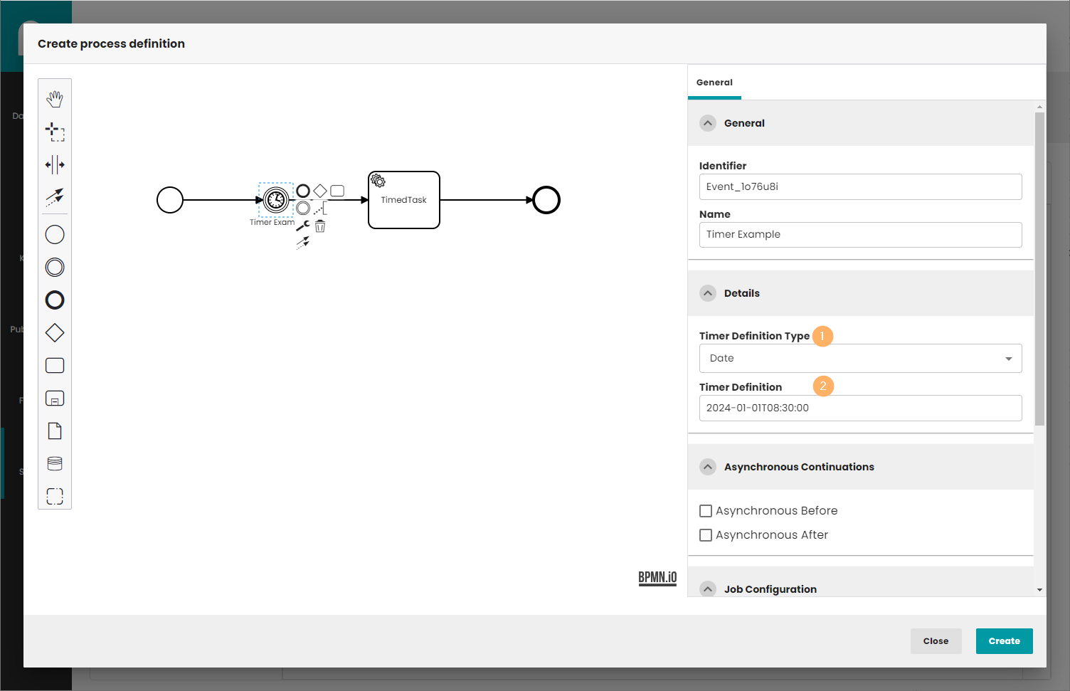- Timer Definition Type: Date, duration or cycle.