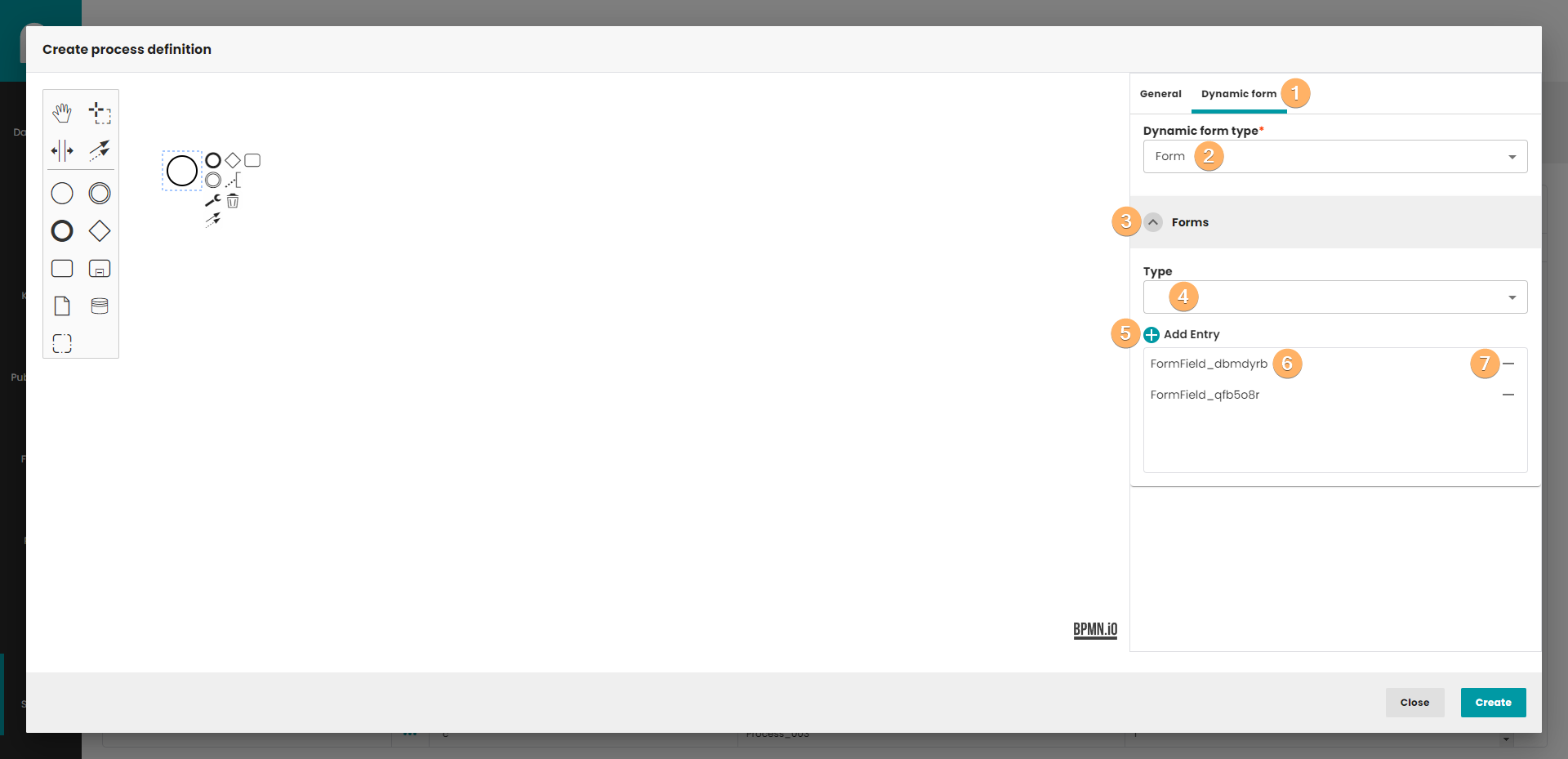 A tab with a dynamic form is a place where you create or indicate a ready form that is to be displayed to the user during the process. You can create a form statically by selecting type "form" or dynamically using plugin method name.