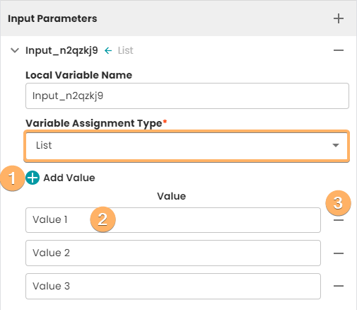 - Button for adding a new input parameter.