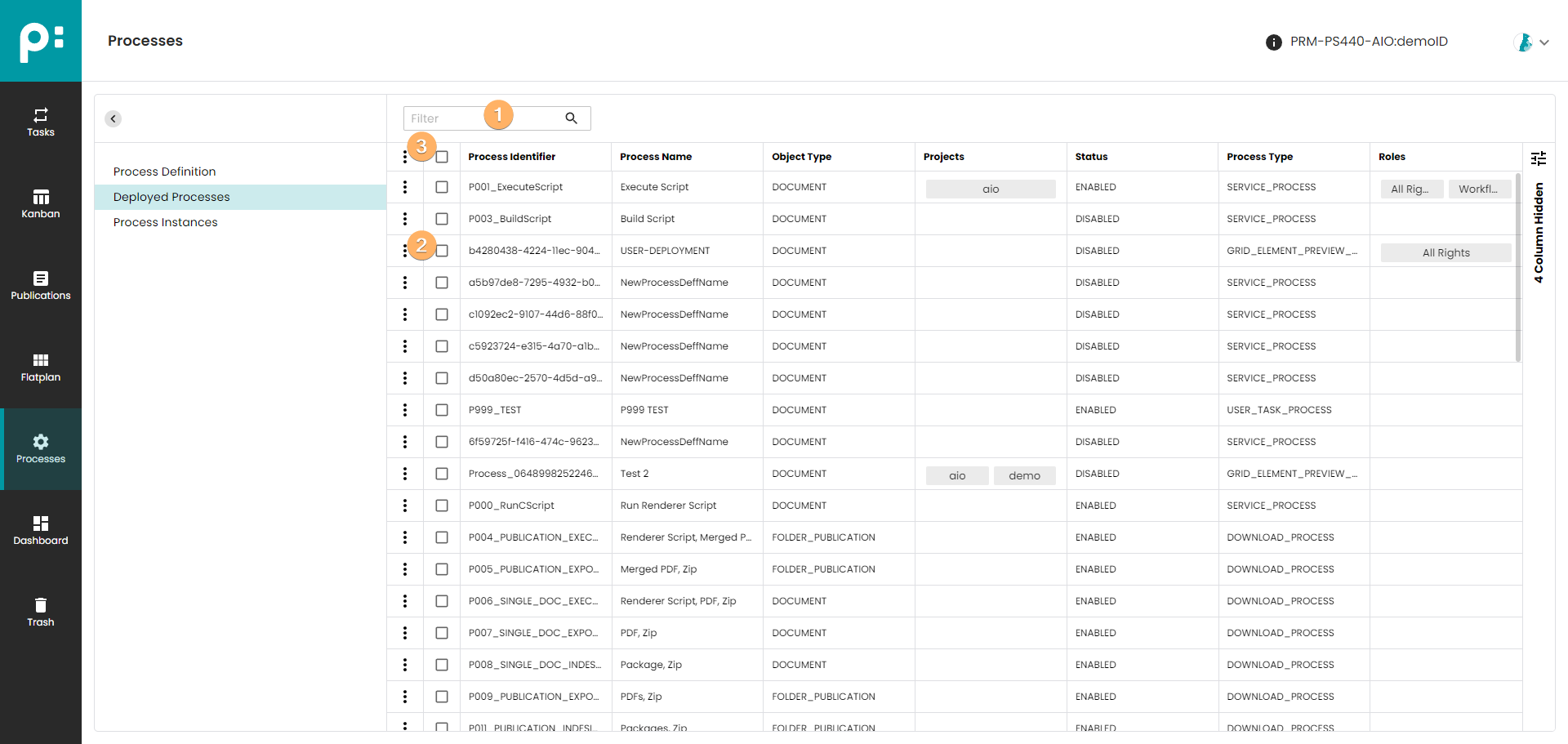 - The multi-selection context menu allows for deleting all revisions of process definition in one step.