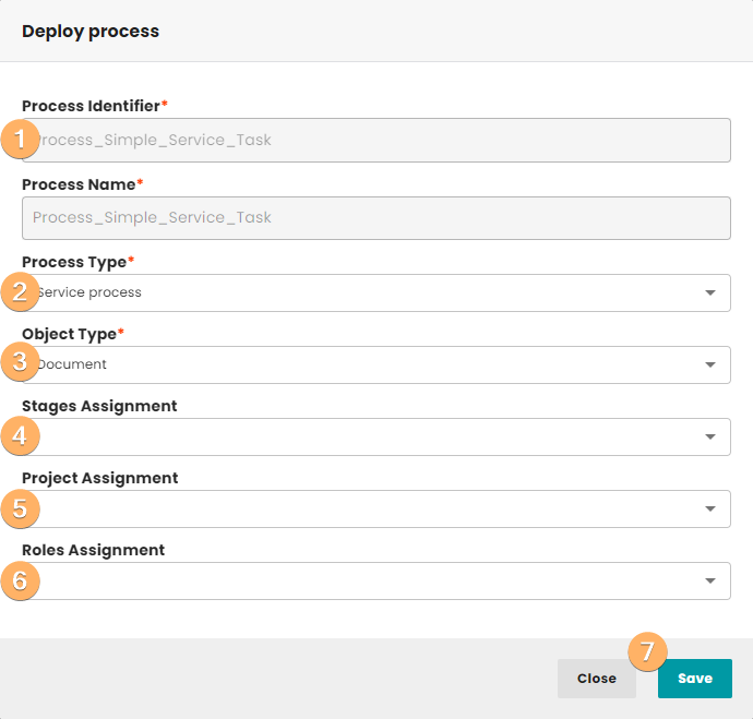 - Clicking Save finishes the deployment with the given metadata. Clicking Close cancels the action.