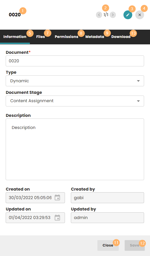 - Documents: information, files, permissions, metadata
