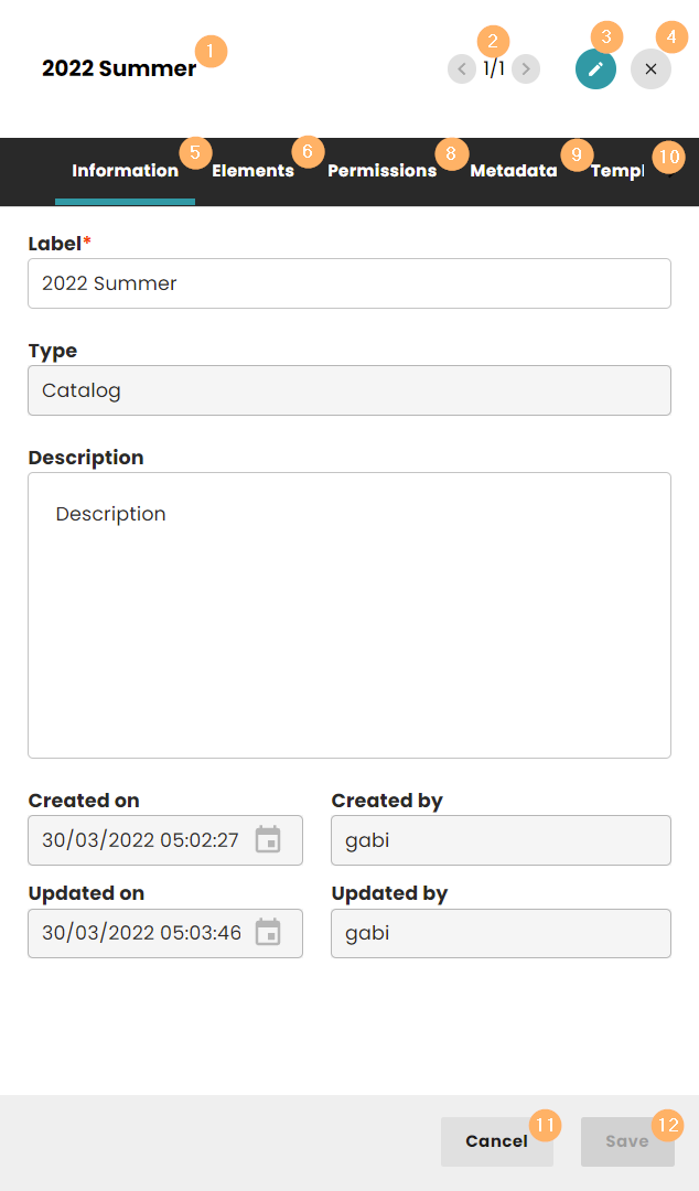 - Tab Elements for publications, and folders.
